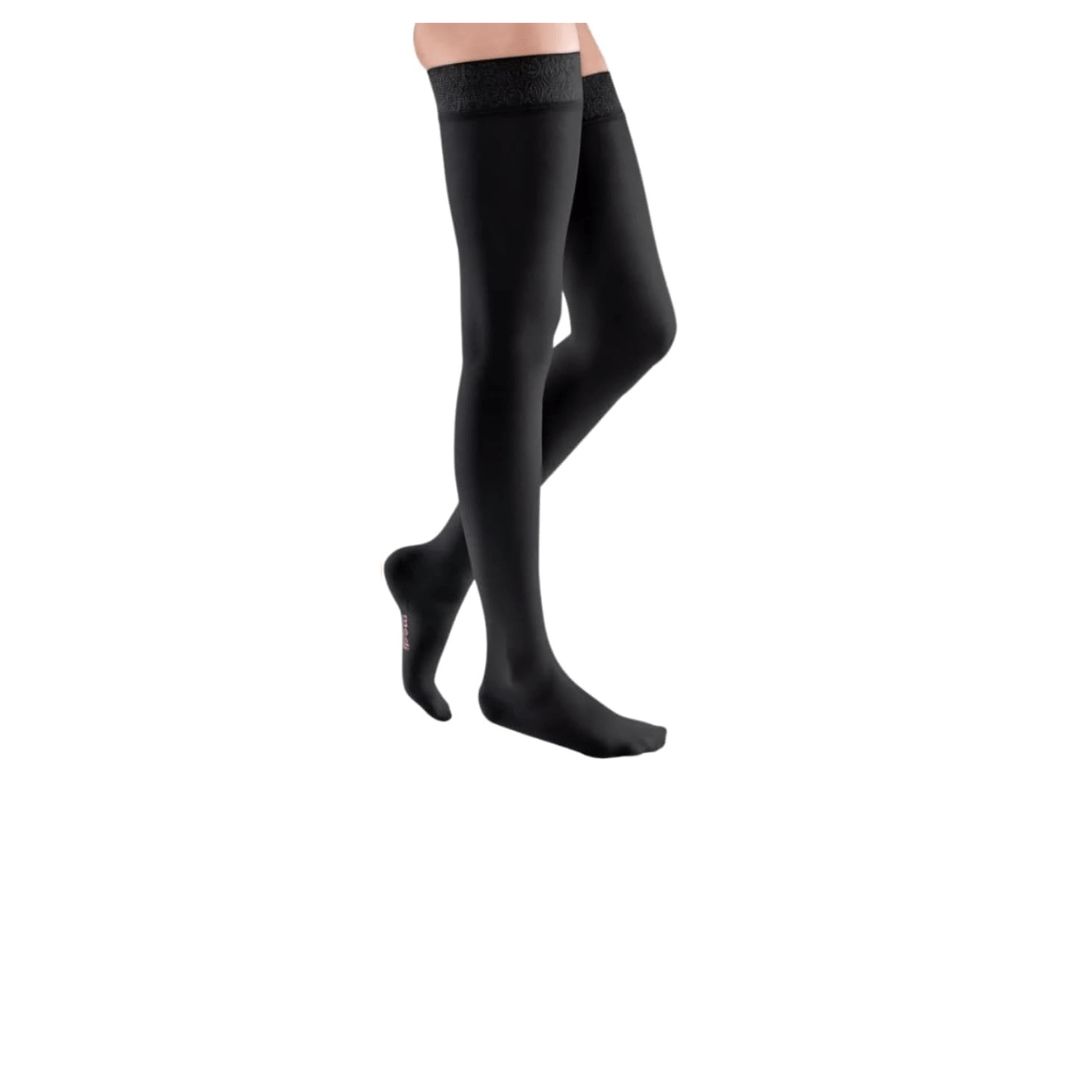 Calza medicale compressiva con l’aspetto di una normale calza elegante.
