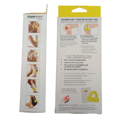 I Tutori Coopercare utilizzano i Cuscinetti Thermovibe, clinicamente testati per alleviare il dolore e rafforzare i muscoli, brevettati sia come cuscinetti riscaldanti passivi, sia come ammortizzatori. I Cuscinetti Thermovibe immagazzinano e reindirizzano il calore corporeo naturale verso muscoli ed articolazioni. Questi cuscinetti gialli si adattano al corpo per massimizzare la loro efficacia senza surriscaldarsi. L’aumento del calore stimola il flusso sanguigno, favorendo la guarigione dell’area lesa.