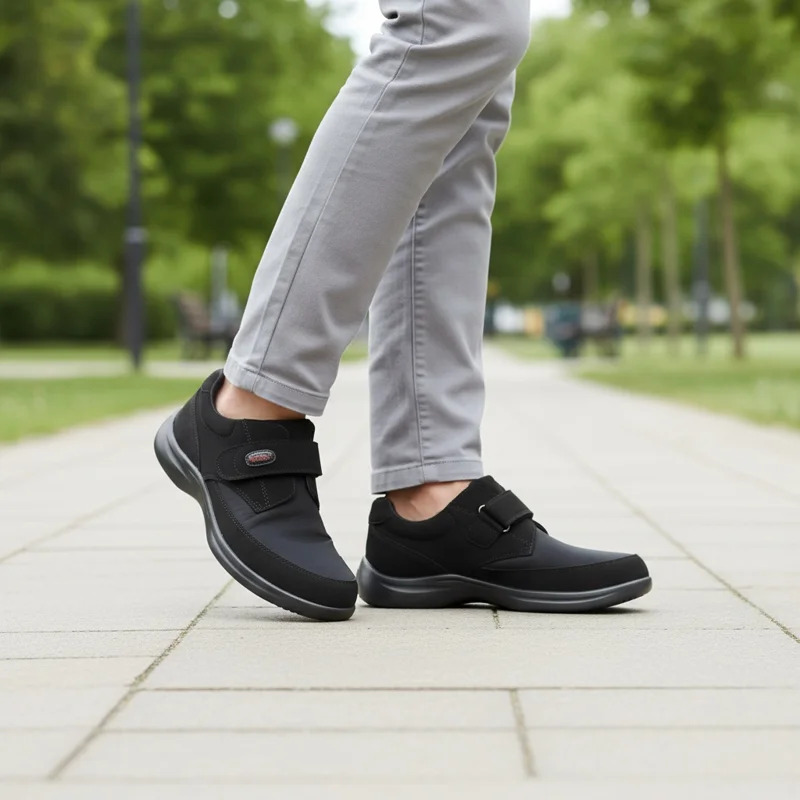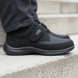 La chiusura a velcro consente di regolare e chiudere la calzatura con una sola mano, permettendo di alloggiare comodamente il piede edematoso, gonfio, bendato o che soffre di deformità causate da artrite reumatoide.