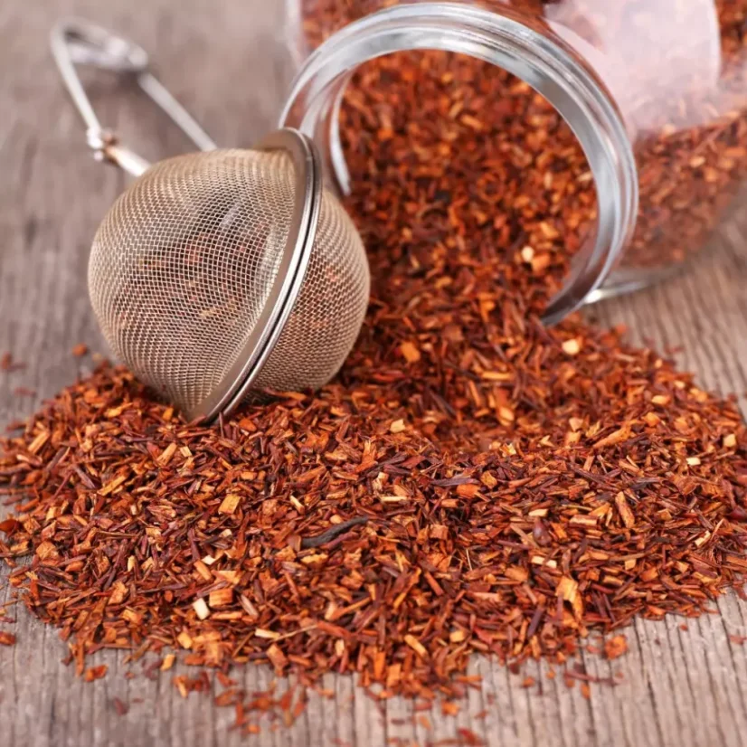 Corteccia di Cannella, Baccelli di Vaniglia, Mandorle, Tè rosso Rooibos, Rosa canina, fiori di Karkadè e Mela.