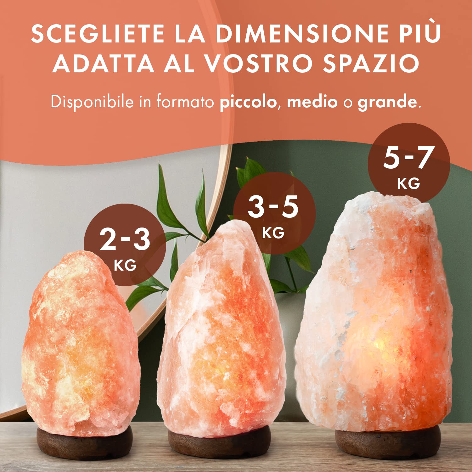 Non esponete la lampada a umidità eccessiva o a pioggia, poiché il sale tende a sciogliersi con l’umidità. Per questo motivo, va posizionata in ambienti asciutti e interni.